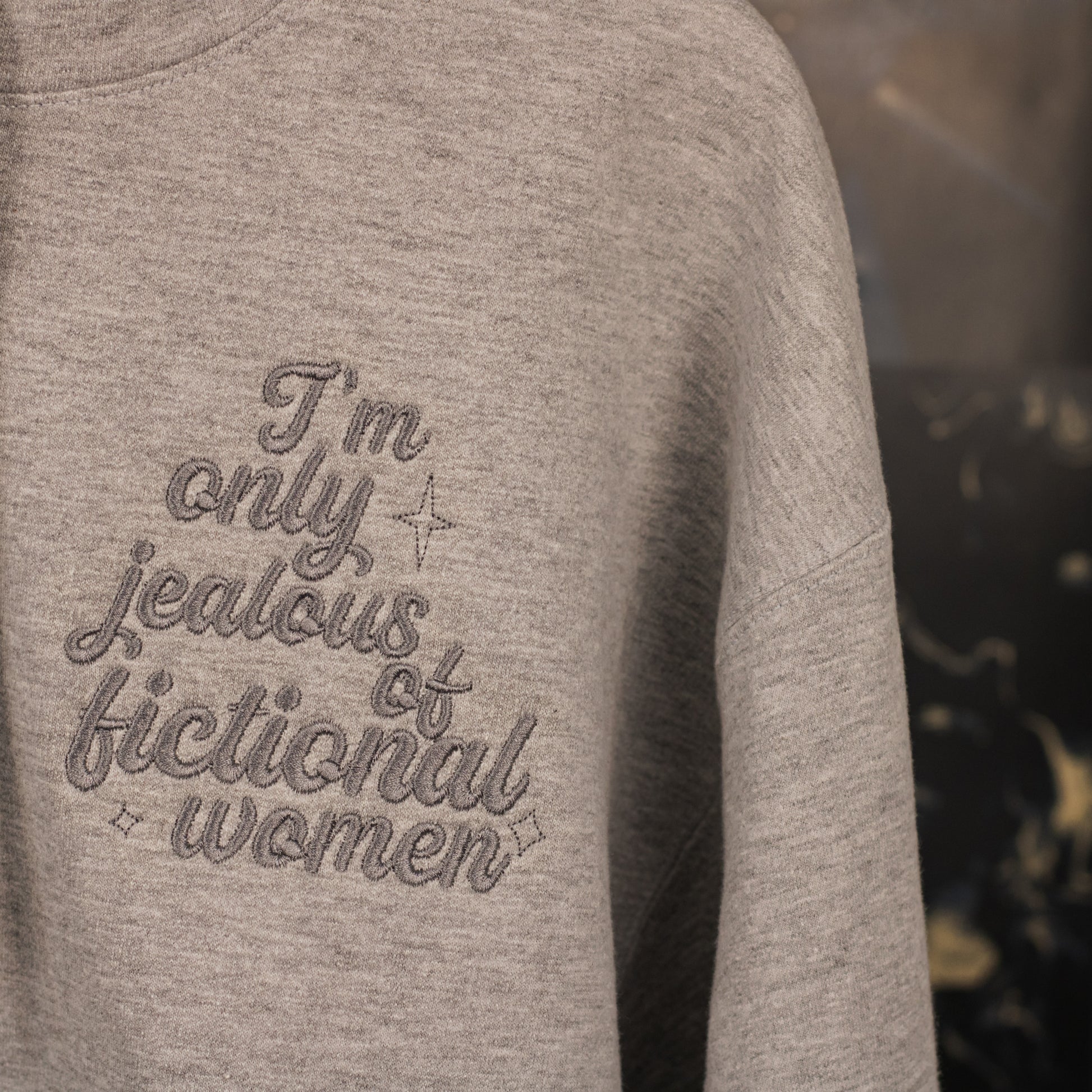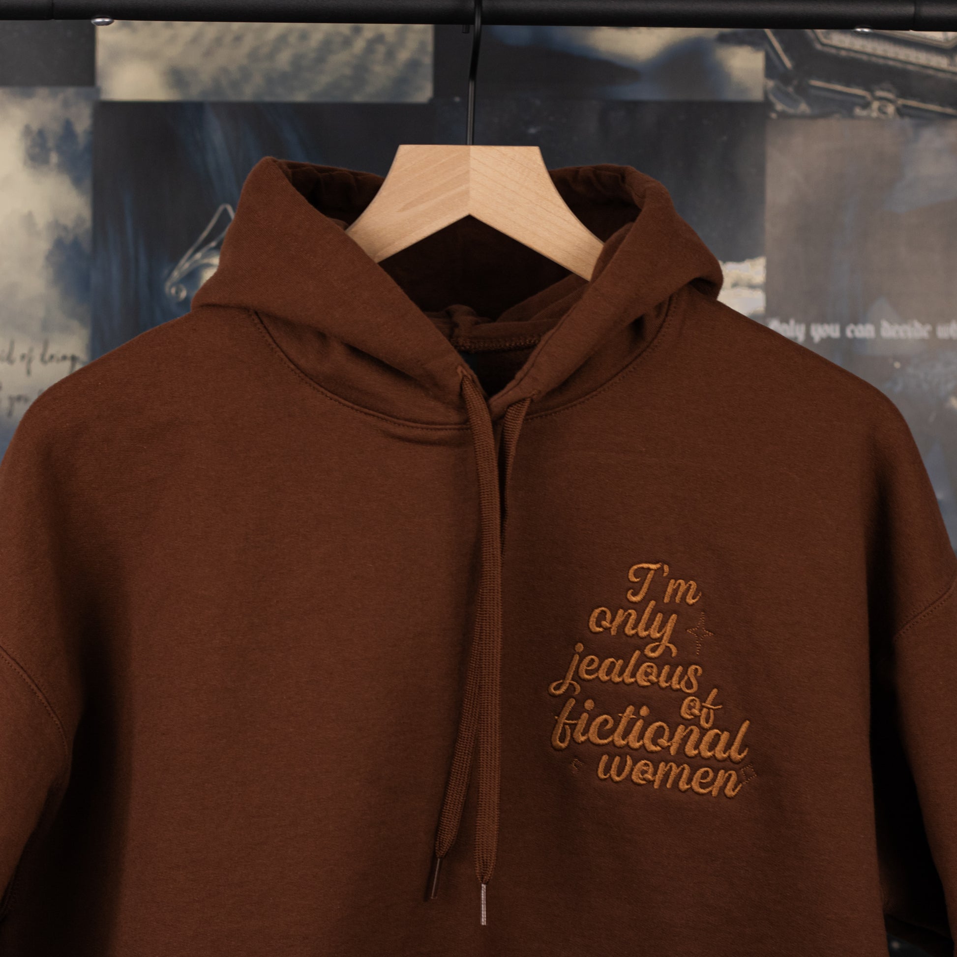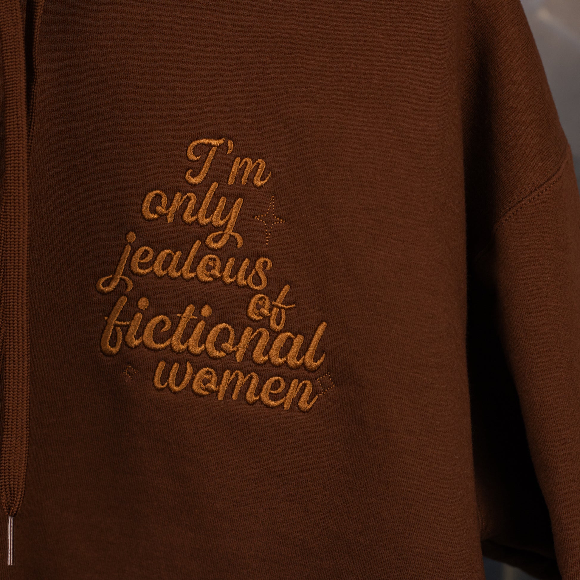 PLEASE NOTE THAT PICTURES SHOWN ARE FOR COLOR OF HOODIE AND THREAD COMBINATION -all hoodies chosen will be with the saying "I'm Only Jealous of Fictional Women"